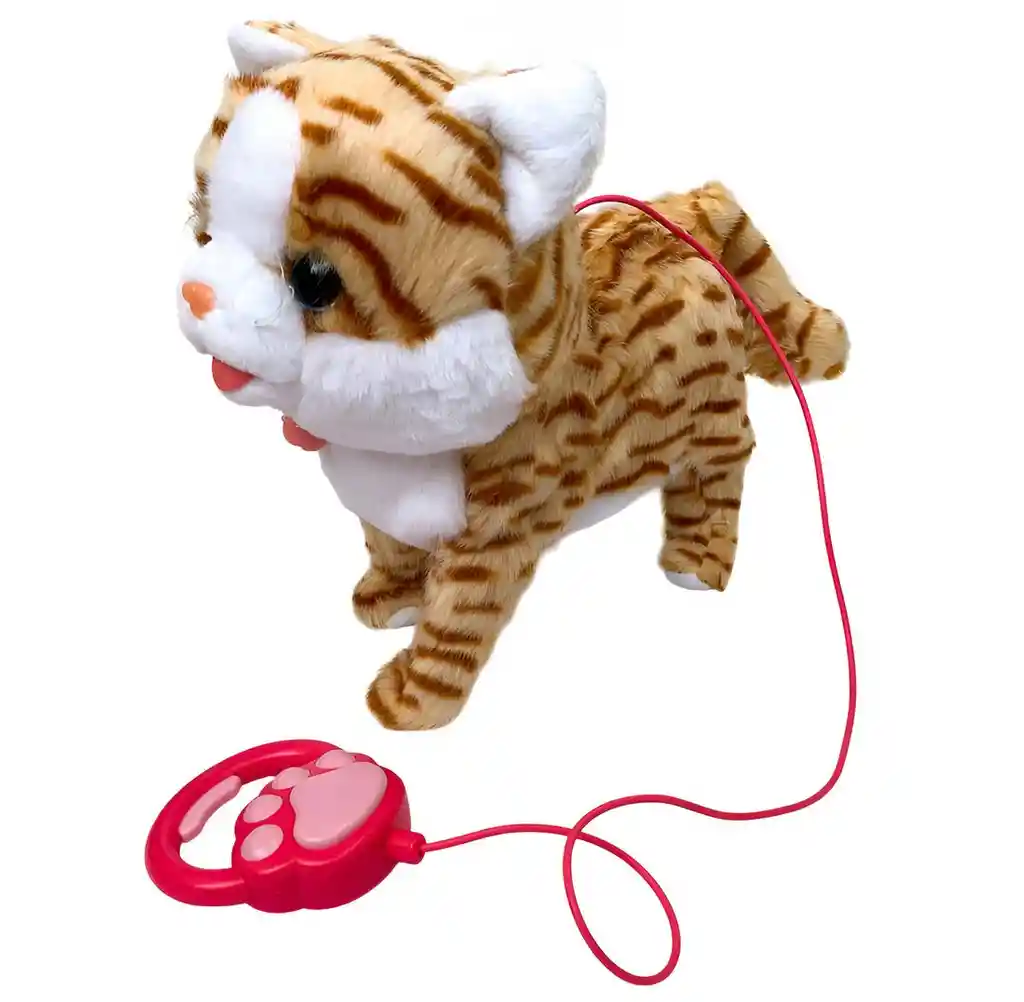 Adorable gatito interactivo de peluche que camina y mueve la cola con ayuda de su control en forma de huella, diseñado con un suave pelaje y un pañuelo colorido que lo hace aún más tierno; ideal para que las niñas disfruten de su primera mascota, fomentando el juego de roles, el cuidado y la diversión en un entorno seguro. Ficha Técnica: Dimensiones : 30 cm x 35 cm x 12 cm Funcionamiento: Bateria AA ( Incluidas ) Material: Peluche felpa Edad Apta : + 3 Años Referencia: AA25167 PL106 Certificado de conformidad: E5-0359-2021 ** _Para defectos de fábrica o retractos: \_Por favor revise el producto apenas lo reciba y antes de usarlo. No aplican ley de retracto o defectos de fábrica luego de usar el producto. Se manejan máximo 5 días para reportar defectos de fábrica (por ejemplo, producto funciona mal, piezas faltantes, rotas, etc). Para hacer efectiva la devolución el producto debe devolverse con el empaque original, el cual debe estar en buen estado, incluir todos los documentos y las partes completas y sin daños.