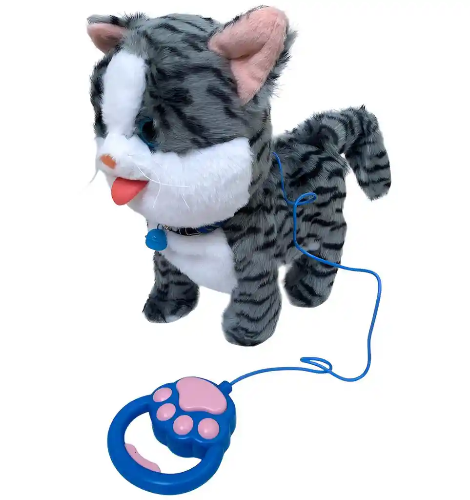 Adorable gatito interactivo de peluche que camina y mueve la cola con ayuda de su control en forma de huella, diseñado con un suave pelaje y un pañuelo colorido que lo hace aún más tierno; ideal para que las niñas disfruten de su primera mascota, fomentando el juego de roles, el cuidado y la diversión en un entorno seguro. Ficha Técnica: Dimensiones : 30 cm x 35 cm x 12 cm Funcionamiento: Bateria AA ( Incluidas ) Material: Peluche felpa Edad Apta : + 3 Años Referencia: AA25167 PL106 Certificado de conformidad: E5-0359-2021 ** _Para defectos de fábrica o retractos: \_Por favor revise el producto apenas lo reciba y antes de usarlo. No aplican ley de retracto o defectos de fábrica luego de usar el producto. Se manejan máximo 5 días para reportar defectos de fábrica (por ejemplo, producto funciona mal, piezas faltantes, rotas, etc). Para hacer efectiva la devolución el producto debe devolverse con el empaque original, el cual debe estar en buen estado, incluir todos los documentos y las partes completas y sin daños.