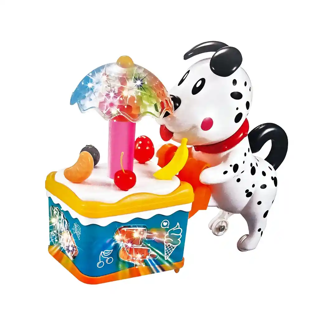 Este perro robot es un juguete encantador que lleva en sus manos una heladería con una sombrilla y frutas sobre el mostrador, creando una escena colorida y divertida. Con luces brillantes, sonidos alegres y movimientos interactivos, este juguete capta la atención de los niños, invitándolos a explorar su imaginación mientras disfrutan de un mundo de diversión lleno de dulces detalles. //// El juguete incluye Baterías /// Ficha Técnica: Dimensiones: 24 cm x 20 cm x 8 cm Material : Plástico ABS no toxico Edad recomendada: + 3 años Tipo de Batería: AA Certificado de conformidad: CS-LCO-13233-2021S2/432 Referencia: 3534A Términos de Garantía: Para defectos de fábrica o retractos: Por favor revise el producto apenas lo reciba y antes de usarlo. No aplican ley de retracto o defectos de fábrica luego de usar el producto. Se manejan máximo 5 días para reportar defectos de fábrica (por ejemplo, producto funciona mal, piezas faltantes, rotas, etc). Para hacer efectiva la devolución el producto debe devolverse con el empaque original, el cual debe estar en buen estado, incluir todos los documentos y las partes completas y sin daños.