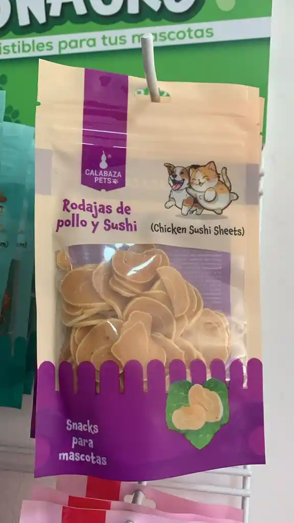snacks para perros y gatos rodajas de pollo y sushi