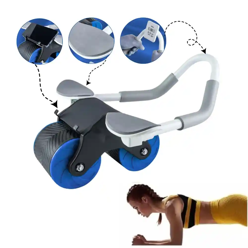 Rodillo abdominal, entrenador abdominal, incluye alfombrilla acolchada para rodillas y temporizador, rueda abdominal de rebote automático para hombres y mujeres, ideal para el entrenamiento abdominal. Acerca de este producto: Entrenador abdominal: a diferencia de otros rodillos AB, hemos añadido bucles de goma engrosados a las ruedas para reducir la fricción en el suelo, lo que lo hace más silencioso y no daña el suelo. Amplía la rueda (10,4 cm), Rebote automático estructura triangular, estable, segura y ergonómica. Diseño de rebote automático: nuestro rodillo abdominal con tecnología de rebote automático, freno automático de rebote de acero, sistema de frenado integrado, rebote de acero más suave. Con soporte para codo y temporizador: nuestras ruedas de rodillo de entrenamiento tienen un soporte para el codo y un mango curvado para garantizar la fuerza adecuada durante el entrenamiento y distribuir la presión de tus muñecas y sobre tu núcleo. Nuestra rueda es resistente al desgaste y el mango de esponja es antideslizante, absorbente del sudor y cómodo de sostener. Hecho de ABS, metal y esponja. Diseño de doble rueda: este rodillo abdominal de ejercicio tiene una parte delantera y trasera más ancha y dos ruedas para un deslizamiento suave y un mejor control. Le ayuda a entrenar cada músculo y en su núcleo mientras proporciona un control más seguro de su cuerpo, especialmente para principiantes. Inicio rápido y apto para principiantes: el diseño de doble resorte con fuerte rebote se dirige a tus abdominales, flexores de cadera y músculos de la espalda. Función de rebote automático y mangos de espuma gruesa que pueden protegerte de lesiones durante el entrenamiento, especialmente adecuado para principiantes.