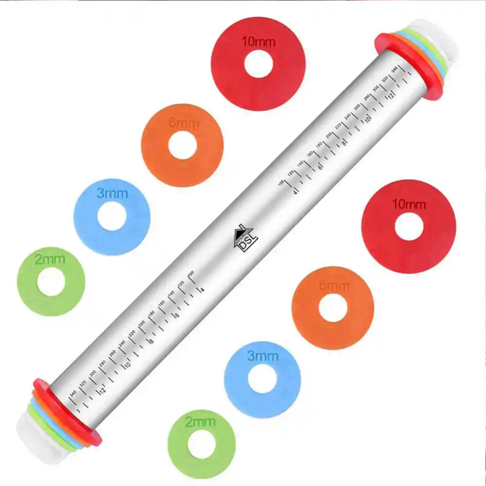 Este rodillo suave y extra ancho es perfecto cuando se trabaja con piezas grandes de fondant para cubrir pasteles. La superficie antiadherente facilita el manejo de grandes cantidades de fondant. Simplemente espolvorea la superficie con azúcar glas y enróllala al tamaño que necesitas, luego levanta el fondant de la superficie de trabajo al pastel. Lograras tener el grosor perfecto en todo momento. También es ideal para el despliegue de masa de pastelería y cortezas de pastel. Incluye 4 pares de anillos guía que están codificados por colores para una fácil identificación: anillos de rojo10 mm (6.5 cm), anillos naranja 6 mm (5.5 cm) anillos azules 3 mm. (5 cm), anillos verdes 1/16" (4.5 cm). Material: rodillo de acero inoxidable anillos de plástico Medida: 4.4 cm de diámetro 34.5 cm de largo Antes del primer uso y después de cada uso, lave con agua tibia y jabón enjuague y seque con un paño suave.