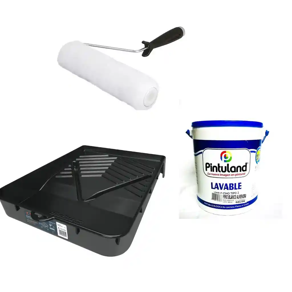 Incluye: 1 Rodillo Para pintar Superficie Lisa + 1 Bandeja para rodillo+ 1/4 Pintura Blanco Fino