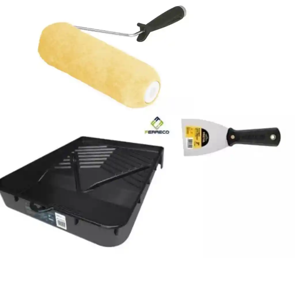 Rodillo Para Pintar Superficie Semi Rugosa + Espátula 3pg + Bandeja Para Rodillo
