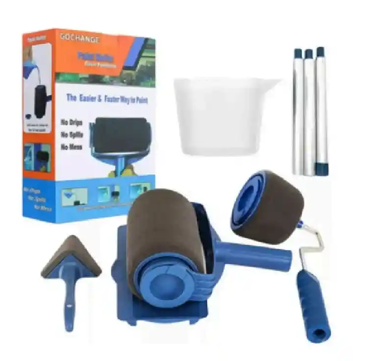 Paint Roller para pintar paredes, puertas, suelos, techos, techos u otras superficies grandes, Flocked Edger para pintar marcos de puertas, alféizares u otras superficies angostas, el Corner Cutter Painter para pintar esquinas o bordes. Disponible para interiores y exteriores. Autocontenido, recargable, lavable y reutilizable: sin perder tiempo agachándose a menudo en la bandeja de pintura para volver a cargar el rodillo. ¡Solo vierta, abra la tapa y Pinte! Después de usar, límpielo, séquelo y consérvelo para la próxima vez. El llenado y la limpieza de la pintura son rápidos y fáciles El kit de rodillo de pintura proporcionará una solución perfecta para la decoración del hogar y la renovación de muebles. Ahorre tiempo, saltee el desorden, menos desperdicio y diviértase pintar: somos extremadamente rigurosos con respecto al rendimiento y la calidad de nuestros productos. Excelente acabado en cualquier superficie: las actividades de decoración de bricolaje / profesional nunca han sido más fáciles con el conjunto de Paint Roller. -Lavable (sólo para pintura a base de agua) -Obtenga resultados prolijos, domine las esquinas y molduras -Pinte fácilmente con los rodillos con sistema de carga continua de pintura *CONTENIDO DEL EMPAQUE: 1 Rodillo Principal. 1 Rodillo bordador con pliegues. 1 Almohadilla de esquina. 1 Bandeja Para colocar la pintura. 1 Recipiente para envasar la pintura. 3 Varillas extensibles