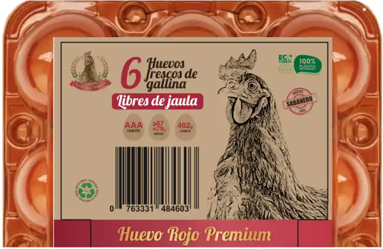 Huevo Rojo Premium Aaa (extra) X 6 Unidades Huevo 100% sabanero de Galiinas Libres de Jaula.