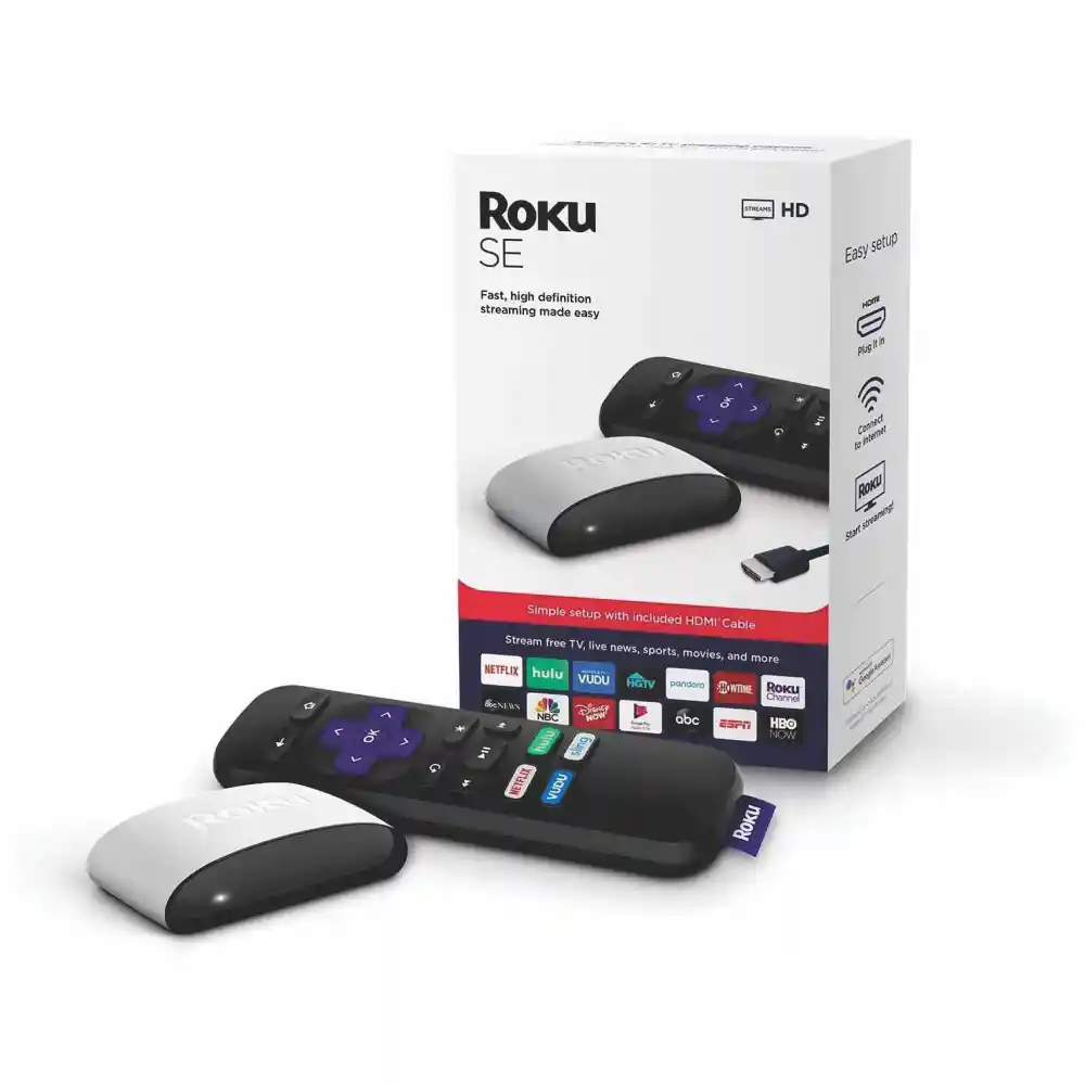 Transmisión sencilla: Roku SE te permite transmitir televisión en línea gratuita, en vivo y premium a través de Internet directamente a tu televisor; es perfecto para nuevos usuarios, televisores secundarios y fácil de regalar, pero lo suficientemente potente para profesionales experimentados Configuración rápida y sencilla: simplemente conéctalo a tu televisor con el cable HDMI de alta velocidad incluido y el cable de alimentación, luego conéctalo a Internet para empezar Actualizaciones automáticas de software: obtén el software más actualizado, incluyendo todas las últimas funciones y canales disponibles sin siquiera pensar en ello Escucha privada en el móvil: utiliza la aplicación móvil gratuita Roku para aumentar el volumen de tus programas sin molestar la casa Garantía de Estados Unidos. En caja: Roku SE reproductor de streaming, mando a distancia con botones de acceso directo de canal preestablecidos, dos baterías AAA, cable HDMI de alta velocidad, cable de alimentación USB Reproduce imágenes y videos en Full HD. Sistema operativo Roku OS. Con conectividad wifi para navegar a alta velocidad. Soporta sistema de audio Dolby. Compatible con televisores y celulares. Estándar wifi IEEE 802.11b/g/n. Interfaz de conexión HDMI. Puerto y tipo de conector: Micro-USB. Incluye cable HDMI. Acceso a plataformas de entretenimiento. Lo que obtienes con tu compra 1 x Roku SE 1 x Cable HDMI 1 x Cable USB Corriente 1 x Manual de Uso 1 x Control Remoto 30 Días de garantía por defectos de fabricación. Recuerda que la vida útil de tu PRODUCTO depende directamente de su uso. Por esto mismo te recomendamos seguir todas las instrucciones que trae cada artículo al pie de la letra y leer el manual de GARANTÍA.