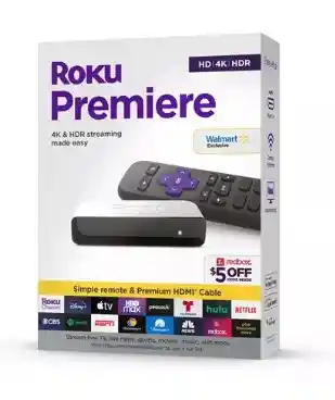 -Reproduce imágenes y videos en 4K. -Sistema operativo Roku OS. -Apto para funcionar también con iOS:Android. -Con conectividad wifi para navegar a alta velocidad. -Compatible con celulares. -Estándar wifi IEEE 802.11a/b/g/n. -Interfaz de conexión HDMI. -Puerto y tipo de conector: DC jack. -Incluye cable HDMI. -Acceso a plataformas de entretenimiento. Increíble imagen a un valor excepcional. Roku Premiere es la forma sencilla de comenzar a transmitir en imágenes HD, 4K y HDR. Encuentre y disfrute fácilmente películas en una brillante imagen 4K con el canal 4K Spotlight. La configuración es simple: solo conéctelo a su televisor con el cable HDMI® de alta velocidad premium incluido y conéctese a Internet. Comience a transmitir una gran selección de TV gratis, en vivo y premium, incluidos Roku® Originals solo en The Roku Channel. La pantalla de inicio personalizable pone sus canales favoritos como Disney+, Prime Video, HBO Max, Apple TV+, Netflix, Sling y Hulu al frente y al centro, para que pueda pasar su tiempo transmitiendo, no desplazándose. Use la aplicación móvil gratuita de Roku como un conveniente segundo control remoto y disfrute de la búsqueda por voz, la escucha privada con auriculares inalámbricos y más. Este Roku Premiere también funciona con asistentes de voz populares. Pídale a su dispositivo habilitado para Alexa o Google Assistant que inicie canales, busque entretenimiento, controle su transmisión y más. También puede controlar su televisor usando la aplicación Apple Home o Siri en sus dispositivos Apple, además de compartir videos, fotos y música desde su dispositivo Apple usando AirPlay. * Mire lo que ama: actualice su transmisión con una gran selección de TV gratis, en vivo y premium, incluidos Roku® Originals y más de 300 canales de TV en vivo gratuitos en The Roku Channel. * Imagen increíble, valor excepcional: ya sea que esté transmitiendo en HD, 4K o HDR, disfrutará de una calidad de imagen optimizada para su televisor con una resolución nítida y colores vivos. * Toneladas de poder, toneladas de diversión: Compacto y repleto de energía, podrá transmitir sus favoritos con facilidad, incluidas películas y series en HBO Max, Netflix, Disney+ y Prime Video. * La configuración es pan comido: conéctelo con el cable HDMI® de alta velocidad premium incluido, conéctese a Internet y comience a transmitir, es así de simple. * Control remoto simple: tiene todo lo que necesita para comenzar a transmitir, además de botones de acceso directo a canales de transmisión populares. * Siempre actualizado: obtenga las funciones más recientes, los canales más nuevos y más con las actualizaciones automáticas de software. * La aplicación móvil gratuita de Roku: controle su dispositivo Roku con un segundo control remoto, realice búsquedas con su voz, disfrute de escuchar en privado con auriculares inalámbricos y más en su dispositivo iOS® o Android™. *Funciona con asistentes de voz populares: disfrute de un control de voz fácil con Siri, Alexa o Google Assistant.