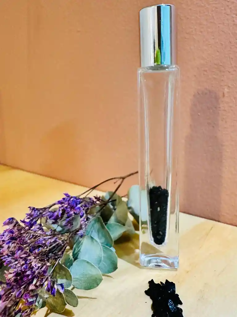 Mantén tus energías y aromas siempre junto a ti, ideal para llenar con tu fragancia o aceite preferidos. Envase con Turmalina, con su energía nos ayuda a absorber cualquier energía de baja frecuencia que se nos refleje o que tengamos arraigada en nuestro interior.