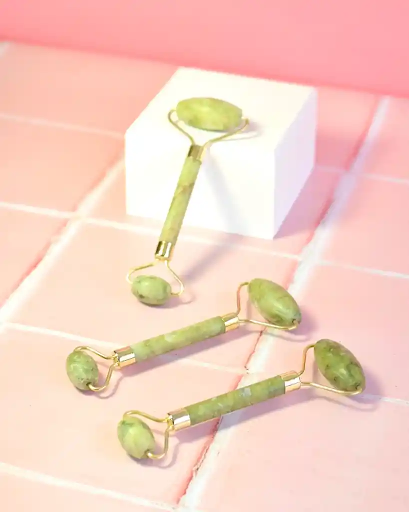 Este accesorio es un rodillo alargado que tiene una piedra de Jade en cada extremo, de ahí su nombre. Estas piedras hacen que, al entrar en contacto con la piel del rostro, puedan proporcionarle muchos beneficios. Esta piedra es de color verde y tiene propiedades muy beneficiosas, por lo que siempre se ha utilizado para diversos tratamientos, aunque el rodillo es un accesorio novedoso. Mejora la circulación al pasarlo por el rostro, ya que actúa como un pequeño masaje que hace que la musculatura facial se desbloquee. Proporciona una sensación relajante en la piel, aliviando dolores musculares y de cabeza. ayuda a desinflamar la zona de la ojera, devuelve elasticidad a la piel.