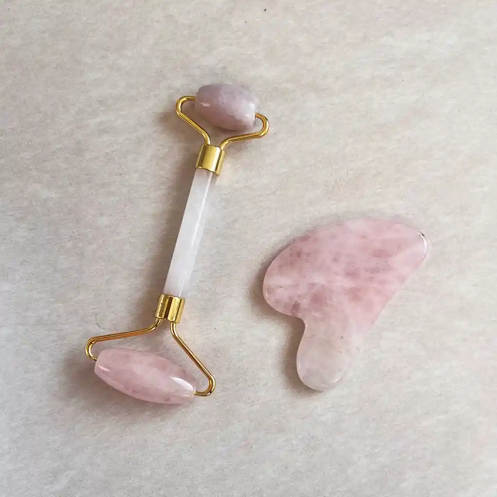 Elaborado en cuarzo rosa 100% real. Ideal para las rutinas de cuidado facial, permite masajear la piel del rostro mejorando su elasticidad y regeneración celular. Sus dos rodillos son fabricados con cuarzo rosa 100% real. El pequeño está diseñado para la zona del contorno de los ojos y fomenta la descongestión y mejoría de bolsas y ojeras, mientras que el rodillo grande es perfecto para aplicar mascarillas de velo, cremas y otros tratamientos faciales.