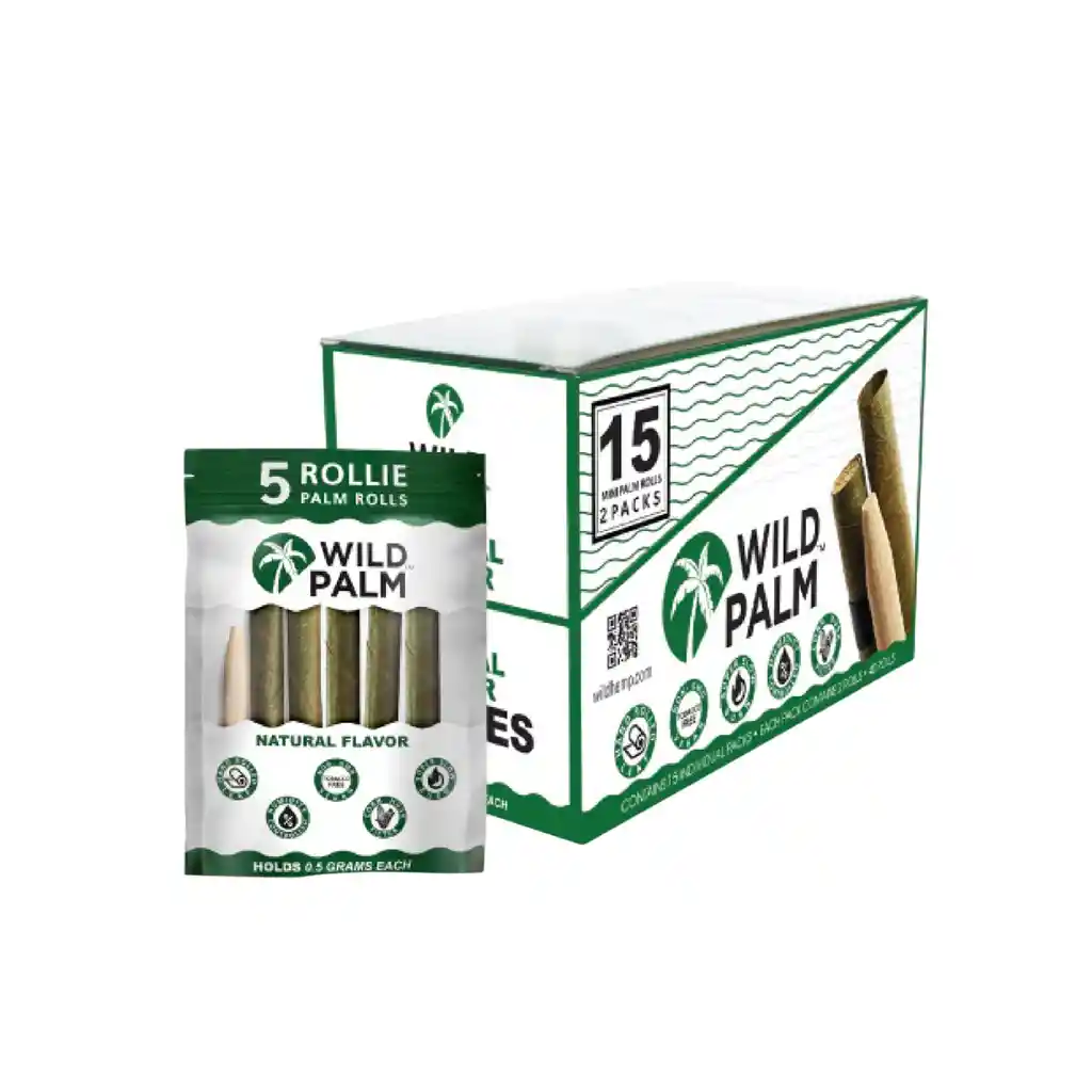 Los Rollie Wild Palm Rolls, con sabores novedosos que harán de tus momentos aún más únicos. Características: Hecho 100% de hoja de cordia 5 rollos por paquete Filtro de cáscara de maíz con perlas de sabor Palo de embalaje de bambú paquete de humedad Biodegradable, reciclable, sin OGM y vegano. Fabricado en MM. 0% THC/CBD y 0% nicotina