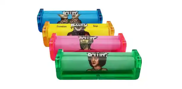 Rolling Machine Lion Circus de 79 mm. Cada rodillo está hecho de una base acrílica curable y un delantal que asegura un rollo apretado y uniforme en todo momento. ¡Estos rodillos lucen la icónica obra de arte de Lion Rolling Circus que seguramente sorprenderá e intrigará incluso al más exigente conocedor de fumar!