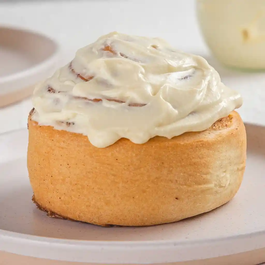 Rollo de canela (especialidad de la casa) bañado en salsa blanca con una textura única y diferente