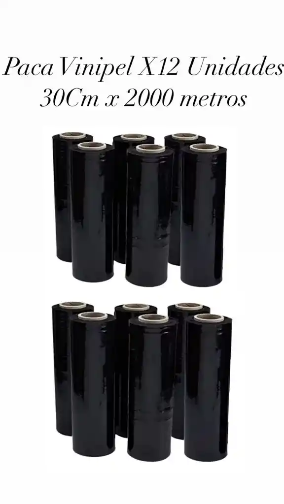 Rollo Stretch Film - Vinipel Industrial NEGRO 30Cms x2000Mts Tamaño rollo cerrado: 30cms ancho x 12cms largo Tamaño rollo abierto: 30cms ancho x 200.000cms largo Película estirable pigmentada negra, compuesta de polietileno lineal de baja densidad (LDPE).Usada para el embalaje de diversos productos con la característica principal de dar privacidad al embalaje gracias a la pigmentación negra.Debe ser almacenado de forma vertical para evitar deformación del core, bajo techo y en lugares libres de contaminación, no debe ser expuesto. Características: • No produce ruido al desenrollar. • Resistencia a la ruptura. • Fácil manipulación para aplicar. • Alto brillo. • Excelente estabilidad y adherencia. Beneficios: • Protección de los productos en el almacenaje y transporte. • Mejor control de inventarios. • Aseguramiento en el paletizaje. • Alta velocidad de aplicación. Garantía Todos nuestros productos tienen 3 meses de garantía por defectos de fabricación. Tenemos envios con pago contraentrega en Bogotá, soacha, chia, usme pueblo, tiguaque, Engativa pueblo, calle 220, facatativa, rosal, zipaquira, tocancipa, cajica, mosquera, funza, Madrid, sopo, sibate, tengo, tabio, cota y calera. Despachamos a todo el país .