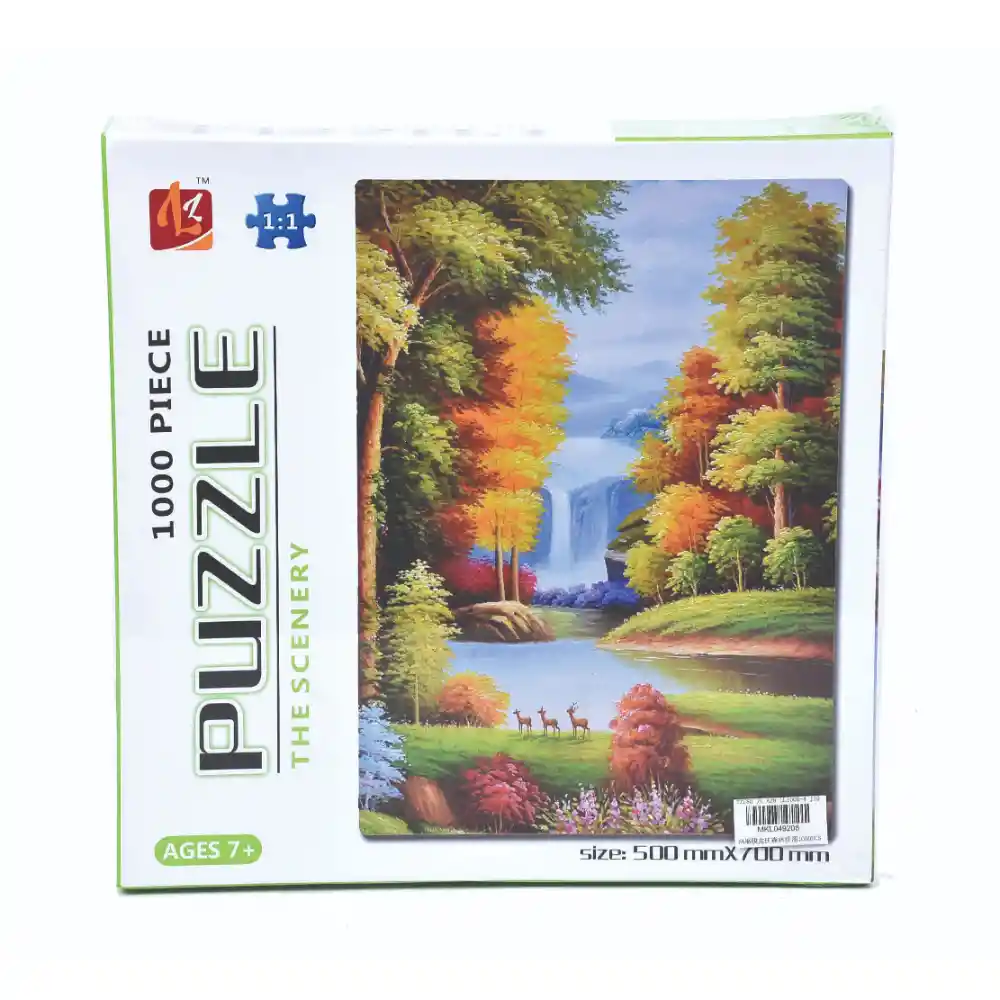 NOMBRE: ROMPECABEZAS 1.000 PIEZAS BOSQUE CAJA DESCRIPCION: Espectacular Rompecabezas de Paisaje de Bosque ideal para pasar horas entretenidas y divertidas; armando y descubriendo la imagen del paisaje. Los Rompecabezas ayudan a fortalecer el desarrollo cognitivo y emocional de las personas, ya que se deben manipular y encajar las piezas, pensar y desarrollar una estrategia para lograr el objetivo y manejar la paciencia durante el juego. Incluye 1.000 piezas. - Dimensiones del producto empacado: 27X27X5.5 centímetros - Disponibilidad permanente - Despachos a nivel nacional - Tiempo de entrega aproximado 3 a 4 días hábiles contados a partir del día hábil siguiente al pedido. La plataforma te dará un tiempo de entrega mas preciso al momento de concretar la compra. Estamos atentos a resolver cualquier inquietud que tengas después de revisar las fotos y descripción del producto. JUGUETELANDIA más de 30 años ofreciendo diversión.