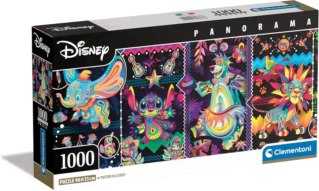 Empaque de regalo sin costo adicional, escríbenos al finalizar la compra. 14 años + Déjate cautivar por el colorido y la magia con este rompecabezas de 1000 piezas que reúne a icónicos personajes Disney como Dumbo, Stitch, Baloo, Simba y Bambi, todos en un vibrante estilo neón. Ideal para quienes buscan una experiencia visual única, llena de fantasía y diversión. La calidad de Clementoni, hecha en Italia, garantiza un encaje perfecto, colores intensos y piezas resistentes. Además, su fabricación responsable utiliza materiales reciclados y evita componentes contaminantes, para que disfrutes armando mientras cuidas el planeta. Tamaño: 25x 34x 4cm