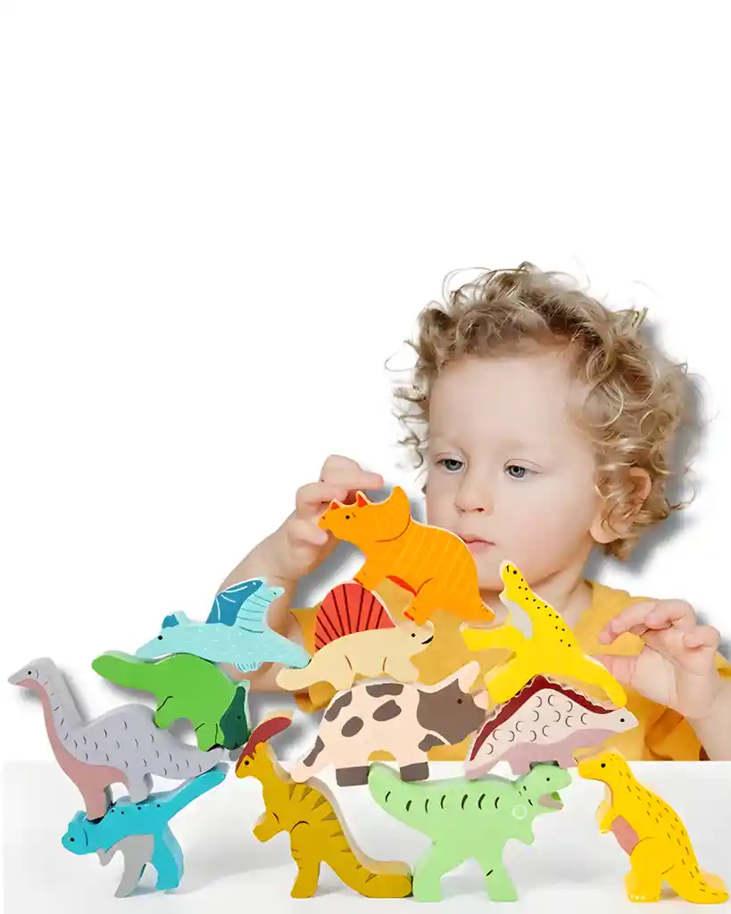 Un juguete educativo y divertido que combina el mundo de los dinosaurios con el aprendizaje del abecedario. - Incluye: piezas de dinosaurios coloridas de la A a la Z. - Material resistente: madera de alta calidad, segura para niños. - Dos formas de juego: ordenar en la bandeja o apilar en forma de pirámide. - Beneficios: desarrolla motricidad fina, coordinación, memoria y reconocimiento de letras. - Edad recomendada: ideal para niños en etapa preescolar y primaria.