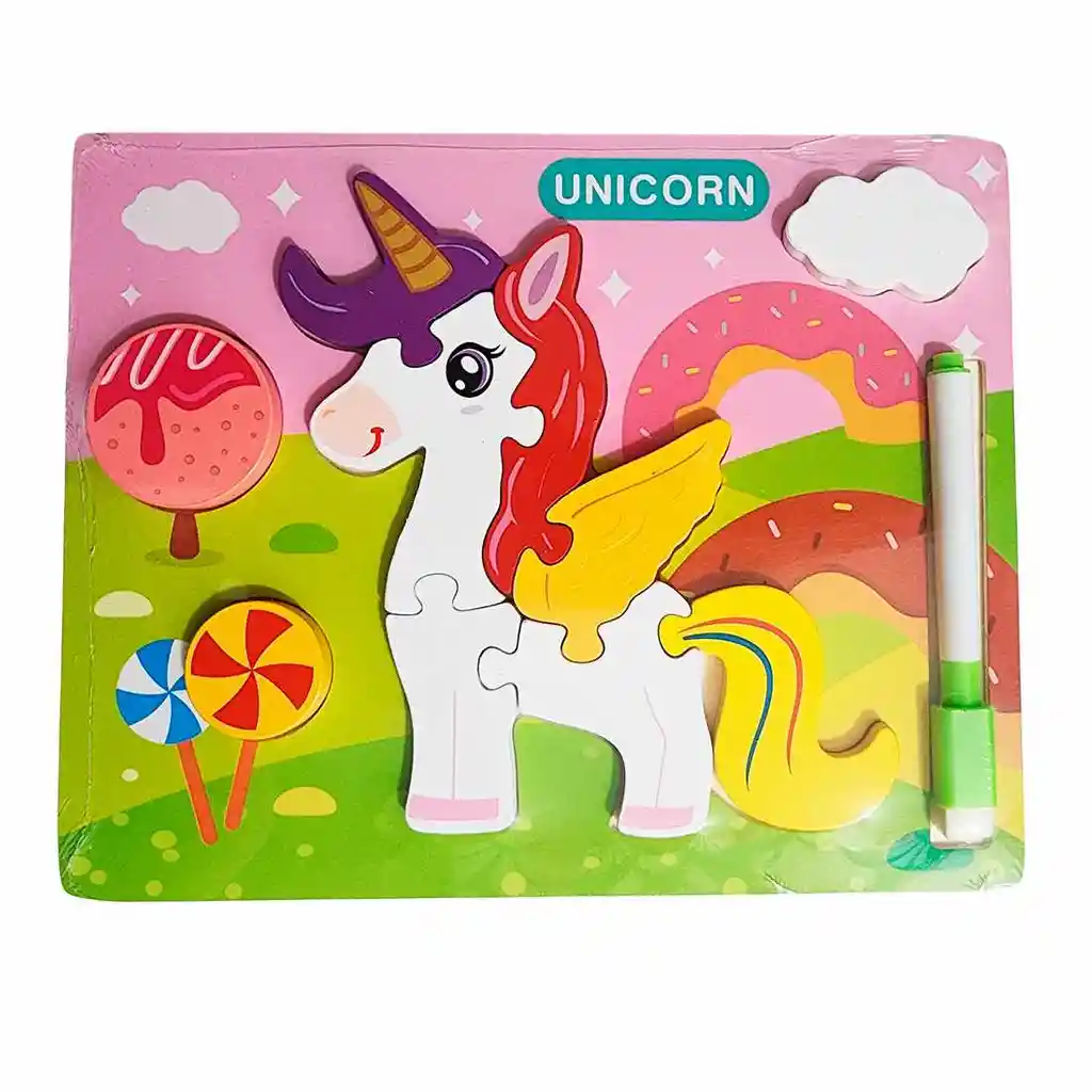 ¡Duplica la diversión y el aprendizaje con este ingenioso tablero didáctico de doble cara, el juguete todo en uno perfecto para la etapa preescolar! Por un lado, tu pequeño desarrollará su lógica y motricidad fina mientras arma un adorable rompecabezas de madera con piezas gruesas y coloridas. Al girarlo, ¡la aventura continúa en una fantástica pizarra blanca! Equipada con el abecedario, números y guías para practicar los primeros trazos, es la herramienta ideal para que los niños se familiaricen con la escritura de una forma lúdica e interactiva. Incluyendo su propio marcador con borrador, este tablero es el regalo perfecto que combina la resolución de problemas con la creatividad, preparando a tu pequeño para el éxito en sus primeras etapas de aprendizaje. Ficha Técnica: Materiales : Madera - Plástico Dimensiones: 23 cm x 18 cm x 1 cm Edad recomendada : + 3 años en adelante Material suave, cómodo, seguro, no tóxico Certificado de conformidad: SL-CS-210044 Referencia: DM1301 ** _Para defectos de fábrica o retractos: \\_Por favor revise el producto apenas lo reciba y antes de usarlo. No aplican ley de retracto o defectos de fábrica luego de usar el producto. Se manejan máximo 5 días para reportar defectos de fábrica (por ejemplo, producto funciona mal, piezas faltantes, rotas, etc). Para hacer efectiva la devolución el producto debe devolverse con el empaque original, el cual debe estar en buen estado, incluir todos los documentos y las partes completas y sin daños.