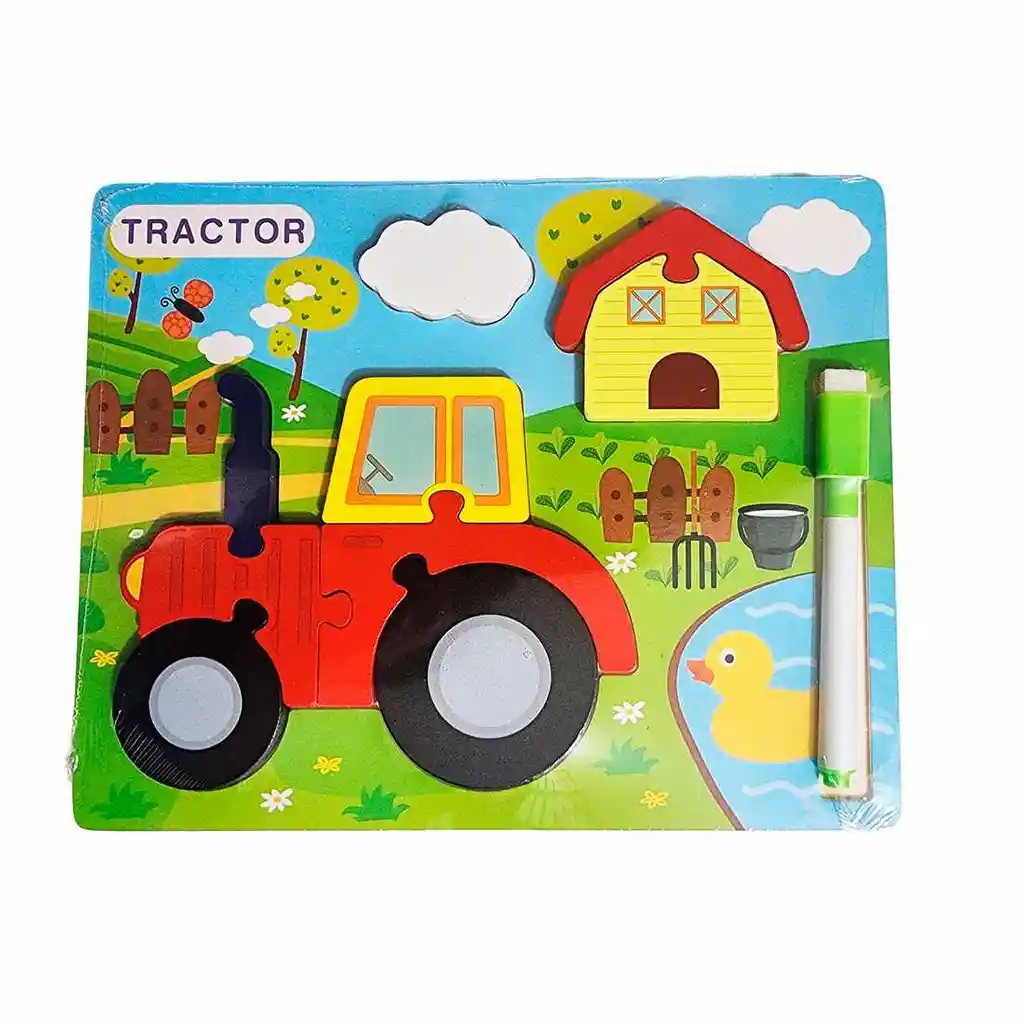 ¡Duplica la diversión y el aprendizaje con este ingenioso tablero didáctico de doble cara, el juguete todo en uno perfecto para la etapa preescolar! Por un lado, tu pequeño desarrollará su lógica y motricidad fina mientras arma un adorable rompecabezas de madera con piezas gruesas y coloridas. Al girarlo, ¡la aventura continúa en una fantástica pizarra blanca! Equipada con el abecedario, números y guías para practicar los primeros trazos, es la herramienta ideal para que los niños se familiaricen con la escritura de una forma lúdica e interactiva. Incluyendo su propio marcador con borrador, este tablero es el regalo perfecto que combina la resolución de problemas con la creatividad, preparando a tu pequeño para el éxito en sus primeras etapas de aprendizaje. Ficha Técnica: Materiales : Madera - Plástico Dimensiones: 23 cm x 18 cm x 1 cm Edad recomendada : + 3 años en adelante Material suave, cómodo, seguro, no tóxico Certificado de conformidad: SL-CS-210044 Referencia: DM1301 ** _Para defectos de fábrica o retractos: \\_Por favor revise el producto apenas lo reciba y antes de usarlo. No aplican ley de retracto o defectos de fábrica luego de usar el producto. Se manejan máximo 5 días para reportar defectos de fábrica (por ejemplo, producto funciona mal, piezas faltantes, rotas, etc). Para hacer efectiva la devolución el producto debe devolverse con el empaque original, el cual debe estar en buen estado, incluir todos los documentos y las partes completas y sin daños.