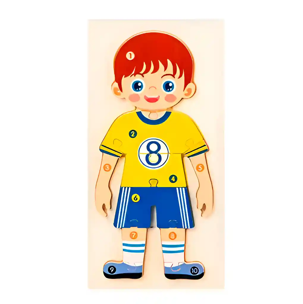 Este Rompecabezas de Madera Didáctico presenta a un simpático personaje en una profesión específica, diseñado para estimular el desarrollo motriz y cognitivo de los niños. Cada pieza del personaje está numerada y coloreada de manera llamativa, lo que facilita el aprendizaje de los números y la identificación de colores. Fabricado en madera de alta calidad, este rompecabezas ofrece una experiencia lúdica y educativa, ayudando a los pequeños a mejorar su coordinación y concentración mientras ensamblan cada parte del personaje. Ideal para horas de juego y aprendizaje. Ficha Técnica: Materiales : Madera Dimensiones: 30 cm x 14 cm x 2 cm Edad recomendada : + 3 años en adelante Material suave, cómodo, seguro, no tóxico Certificado de conformidad: SL-CS-210044 Referencia: DM1282 ** _Para defectos de fábrica o retractos: \_Por favor revise el producto apenas lo reciba y antes de usarlo. No aplican ley de retracto o defectos de fábrica luego de usar el producto. Se manejan máximo 5 días para reportar defectos de fábrica (por ejemplo, producto funciona mal, piezas faltantes, rotas, etc). Para hacer efectiva la devolución el producto debe devolverse con el empaque original, el cual debe estar en buen estado, incluir todos los documentos y las partes completas y sin daños.