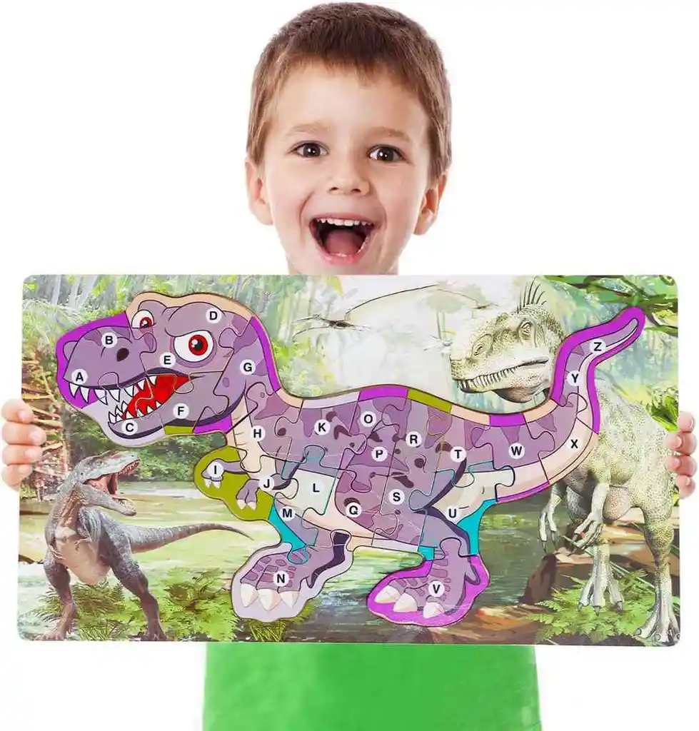 Rompecabezas en madera de un hermoso dinosaurio, elaborado con materiales seguros y de calidad, en el que cada pieza está marcada con una letra del abecedario, convirtiéndose en una herramienta educativa ideal para que los niños aprendan de forma divertida mientras desarrollan habilidades cognitivas, reconocimiento de letras, coordinación motora y estimulación visual. Ficha Técnica: Dimensiones: 39 cm x 22 cm x 2 cm Material: Madera Edad recomendada + 3 Años Certificado de conformidad: SL-CS-210044 Referencia: WM-59 ** _Para defectos de fábrica o retractos: \_Por favor revise el producto apenas lo reciba y antes de usarlo. No aplican ley de retracto o defectos de fábrica luego de usar el producto. Se manejan máximo 5 días para reportar defectos de fábrica (por ejemplo, producto funciona mal, piezas faltantes, rotas, etc). Para hacer efectiva la devolución el producto debe devolverse con el empaque original, el cual debe estar en buen estado, incluir todos los documentos y las partes completas y sin daños.