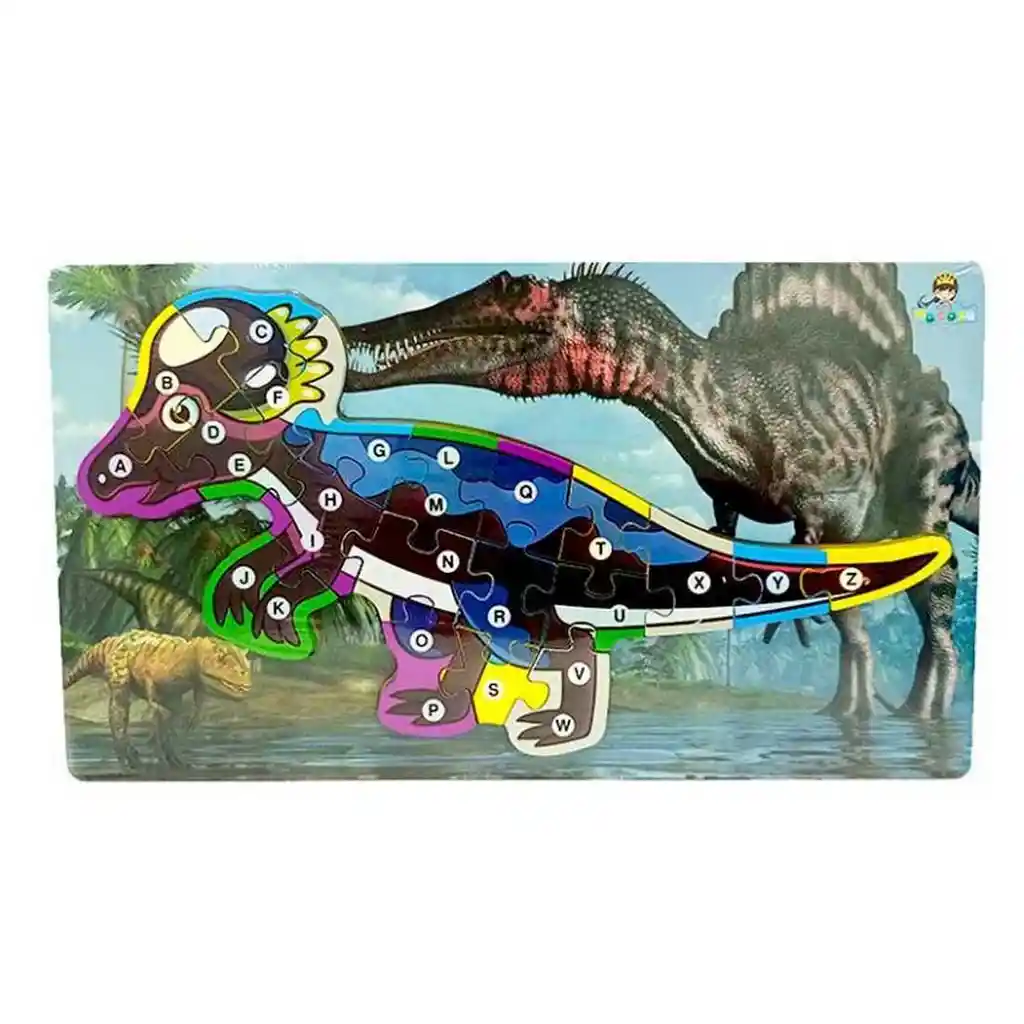 Rompecabezas en madera de un hermoso dinosaurio, elaborado con materiales seguros y de calidad, en el que cada pieza está marcada con una letra del abecedario, convirtiéndose en una herramienta educativa ideal para que los niños aprendan de forma divertida mientras desarrollan habilidades cognitivas, reconocimiento de letras, coordinación motora y estimulación visual. Ficha Técnica: Dimensiones: 39 cm x 22 cm x 2 cm Material: Madera Edad recomendada + 3 Años Certificado de conformidad: SL-CS-210044 Referencia: WM-59 ** _Para defectos de fábrica o retractos: \_Por favor revise el producto apenas lo reciba y antes de usarlo. No aplican ley de retracto o defectos de fábrica luego de usar el producto. Se manejan máximo 5 días para reportar defectos de fábrica (por ejemplo, producto funciona mal, piezas faltantes, rotas, etc). Para hacer efectiva la devolución el producto debe devolverse con el empaque original, el cual debe estar en buen estado, incluir todos los documentos y las partes completas y sin daños.