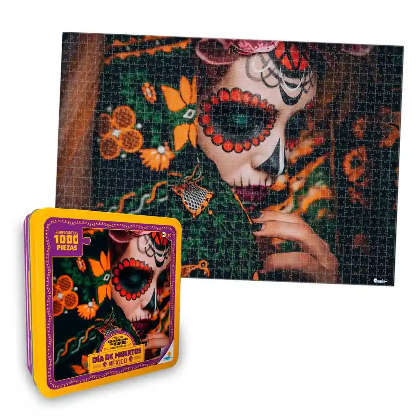 Rompecabezas Juego de Mesa Día de Muertos Incluye: 1 rompecabezas de 1000 piezas Diseño: Día de Muertos, México Presentación: Caja metálica, ideal para almacenar y conservar Marca: Ronda Colección: Celebraciones del Mundo Edad recomendada: 16+ Características: - Estimula la concentración, memoria, paciencia y pensamiento lógico. - Ideal para armar solo, en familia o con amigos. - Una vez armado, puede utilizarse como elemento decorativo. Recomendado para: - Jóvenes y adultos - Amantes de los rompecabezas y juegos de mesa - Personas interesadas en la cultura y tradiciones mexicanas - Regalos originales, culturales y educativos ¡Un rompecabezas que rinde homenaje a una tradición llena de historia, color y significado, ideal para disfrutar y coleccionar!