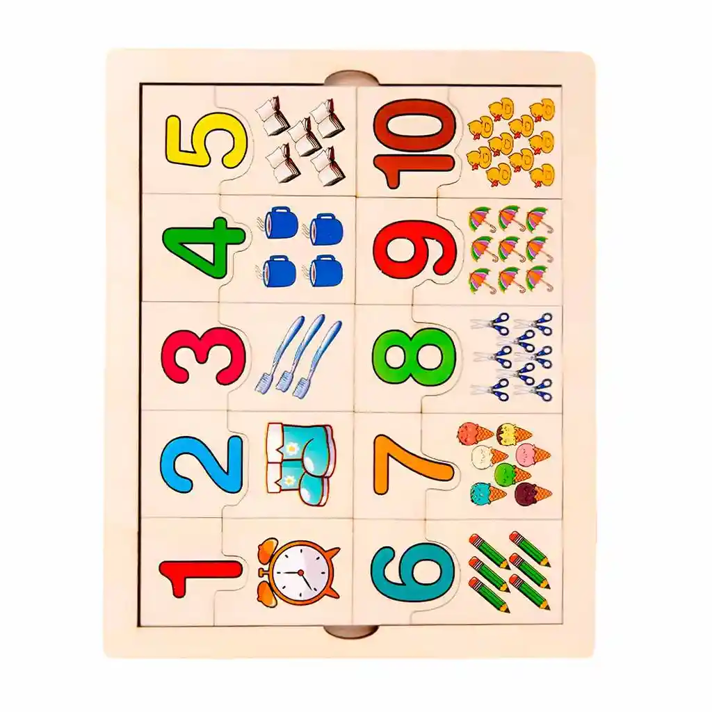 ¡Despierta la curiosidad y el amor por los números en tu pequeño con este encantador rompecabezas educativo de madera! Diseñado para que aprender a contar del 1 al 10 sea una aventura divertida y llena de color, cada número se empareja con una pieza que ilustra la cantidad correspondiente de objetos, desde un reloj hasta diez adorables patitos. Fabricado con madera de alta calidad, colores vivos y bordes suaves y seguros para manos pequeñas, este juguete es la herramienta perfecta para desarrollar habilidades fundamentales como el reconocimiento numérico, el conteo, la motricidad fina y la resolución de problemas, convirtiendo el aprendizaje en una experiencia de juego inolvidable. Ficha Técnica: Dimensiones tablero: 22 cm x 18 cm x 1 cm Material: Madera Edad recomendada: + 3 años Certificado de conformidad: SL-CS-210044 Referencia: DM579 Términos de garantía: Para defectos de fábrica o retractos: Por favor revise el producto apenas lo reciba y antes de usarlo. No aplican ley de retracto o defectos de fábrica luego de usar el producto. Se manejan máximo 5 días para reportar defectos de fábrica (por ejemplo, producto funciona mal, piezas faltantes, rotas, etc). Para hacer efectiva la devolución el producto debe devolverse con el empaque original, el cual debe estar en buen estado, incluir todos los documentos y las partes completas y sin daños.