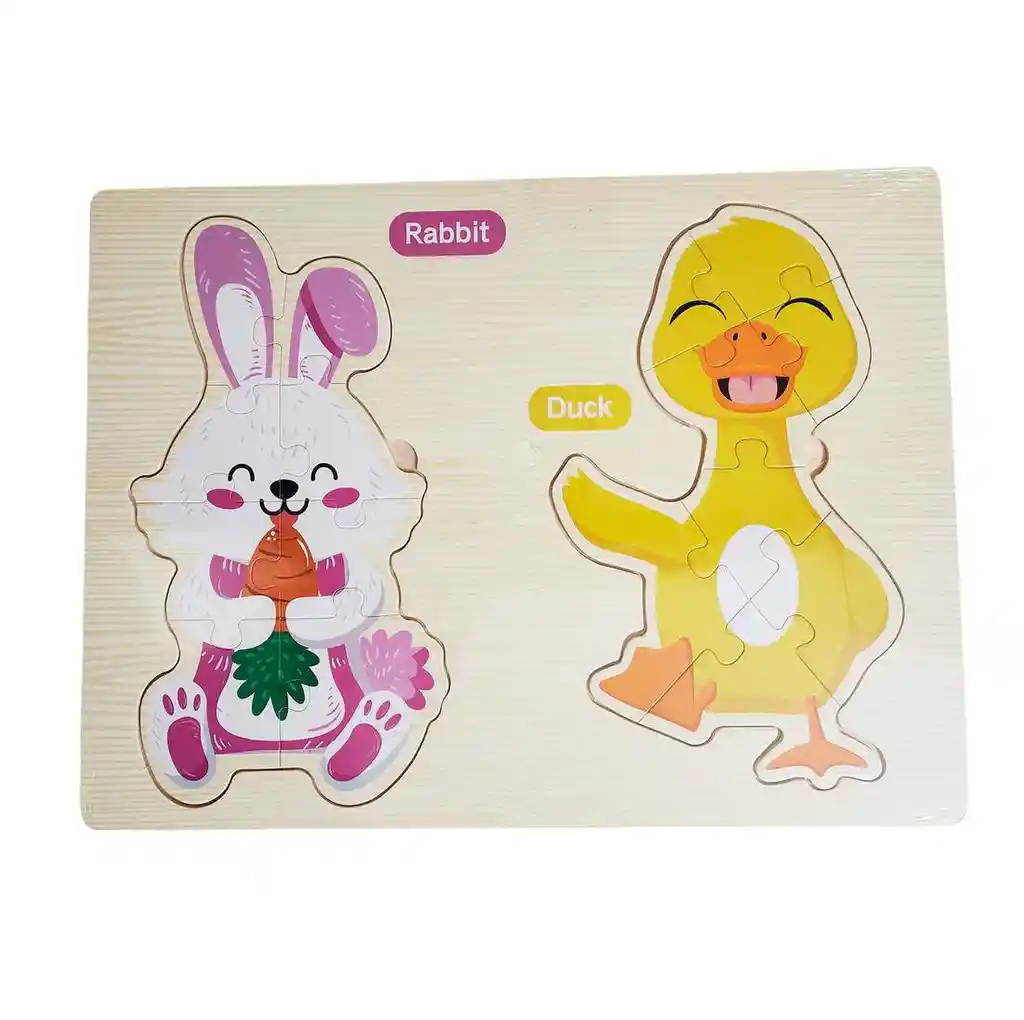 ¡Inicia a tu pequeño en el fascinante mundo de los rompecabezas con esta tabla de madera que ofrece el doble de diversión y aprendizaje! Este juguete didáctico presenta dos encantadoras y coloridas figuras de animalitos, diseñadas para capturar la atención y estimular la curiosidad de los niños. Cada rompecabezas está compuesto por piezas de tamaño perfecto para las manitas pequeñas, ayudándoles a desarrollar habilidades esenciales como la motricidad fina, la coordinación mano-ojo y la resolución de problemas de una forma intuitiva y entretenida. Fabricado en madera de alta calidad, este set 2 en 1 es la herramienta ideal para sus primeros desafíos de encaje, garantizando horas de juego y concentración en un solo tablero. Ficha Técnica Dimensiones de: 29 cm x 22 cm x 0.5 cm Material: Madera Edad recomendada: + 3 años Referencia: DM1275 Certificado de conformidad: E5-0359-2021 ** _Para defectos de fábrica o retractos: \_Por favor revise el producto apenas lo reciba y antes de usarlo. No aplican ley de retracto o defectos de fábrica luego de usar el producto. Se manejan máximo 5 días para reportar defectos de fábrica (por ejemplo, producto funciona mal, piezas faltantes, rotas, etc). Para hacer efectiva la devolución el producto debe devolverse con el empaque original, el cual debe estar en buen estado, incluir todos los documentos y las partes completas y sin daños.