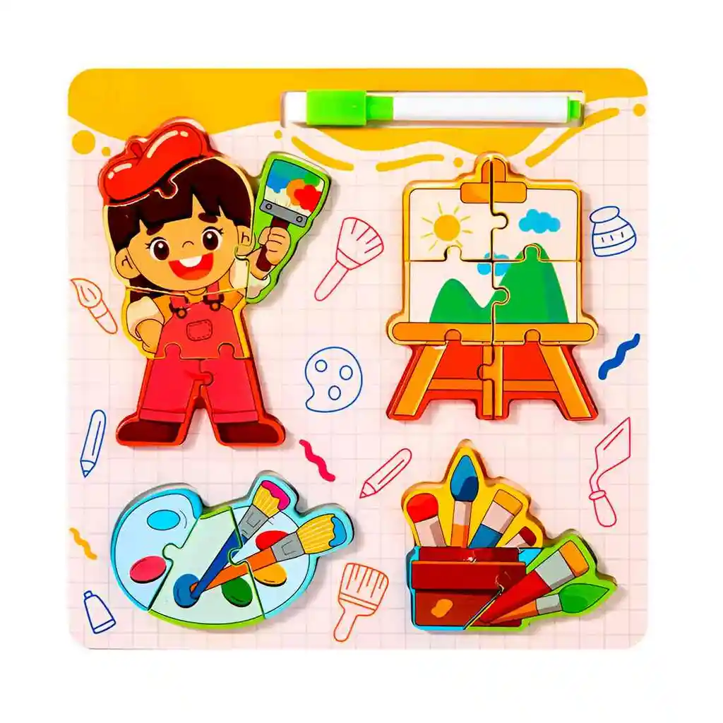 Despierta la curiosidad y la vocación de tu pequeño con este increíble set de juego educativo, diseñado para introducirlo al fascinante mundo de las profesiones y sus herramientas de trabajo. A través de piezas interactivas y coloridas, tu hijo podrá explorar diferentes oficios, armando escenas y asociando cada trabajador con sus instrumentos característicos. Este juguete es una herramienta fantástica para desarrollar habilidades clave como la motricidad fina, el pensamiento lógico y la resolución de problemas, mientras enriquece su vocabulario y comprensión del mundo que lo rodea. Es el regalo perfecto para inspirar horas de juego imaginativo, donde cada niño puede soñar con ser un constructor, un héroe de la comunidad o el profesional que desee ser mañana. Ficha Técnica: Dimensiones : 22 cm x 22 cm x 0.5 cm Material: Madera Edad apta + 3 años Certificado de conformidad: SL-CS-210044 Referencia: DM1366 ** _Para defectos de fábrica o retractos: \_Por favor revise el producto apenas lo reciba y antes de usarlo. No aplican ley de retracto o defectos de fábrica luego de usar el producto. Se manejan máximo 5 días para reportar defectos de fábrica (por ejemplo, producto funciona mal, piezas faltantes, rotas, etc). Para hacer efectiva la devolución el producto debe devolverse con el empaque original, el cual debe estar en buen estado, incluir todos los documentos y las partes completas y sin daños.