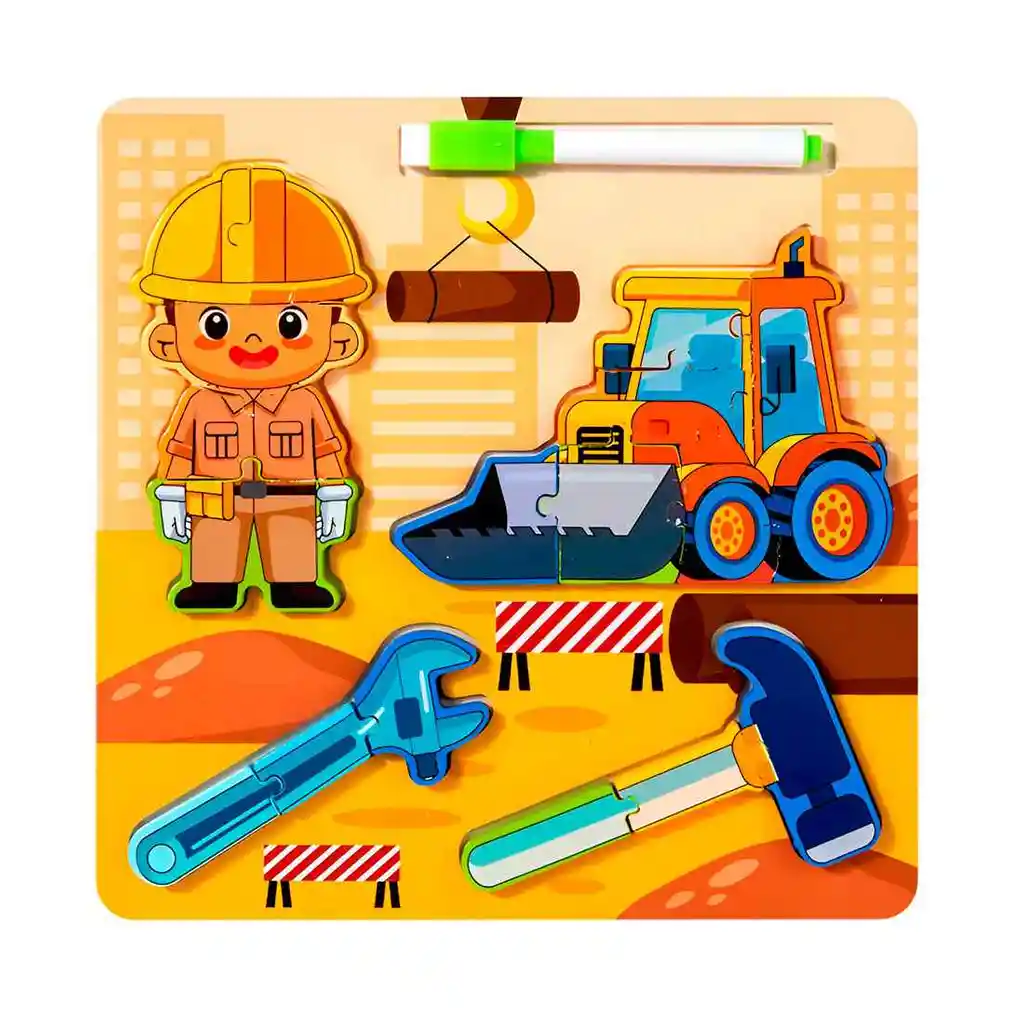 Despierta la curiosidad y la vocación de tu pequeño con este increíble set de juego educativo, diseñado para introducirlo al fascinante mundo de las profesiones y sus herramientas de trabajo. A través de piezas interactivas y coloridas, tu hijo podrá explorar diferentes oficios, armando escenas y asociando cada trabajador con sus instrumentos característicos. Este juguete es una herramienta fantástica para desarrollar habilidades clave como la motricidad fina, el pensamiento lógico y la resolución de problemas, mientras enriquece su vocabulario y comprensión del mundo que lo rodea. Es el regalo perfecto para inspirar horas de juego imaginativo, donde cada niño puede soñar con ser un constructor, un héroe de la comunidad o el profesional que desee ser mañana. Ficha Técnica: Dimensiones : 22 cm x 22 cm x 0.5 cm Material: Madera Edad apta + 3 años Certificado de conformidad: SL-CS-210044 Referencia: DM1366 ** _Para defectos de fábrica o retractos: \_Por favor revise el producto apenas lo reciba y antes de usarlo. No aplican ley de retracto o defectos de fábrica luego de usar el producto. Se manejan máximo 5 días para reportar defectos de fábrica (por ejemplo, producto funciona mal, piezas faltantes, rotas, etc). Para hacer efectiva la devolución el producto debe devolverse con el empaque original, el cual debe estar en buen estado, incluir todos los documentos y las partes completas y sin daños.
