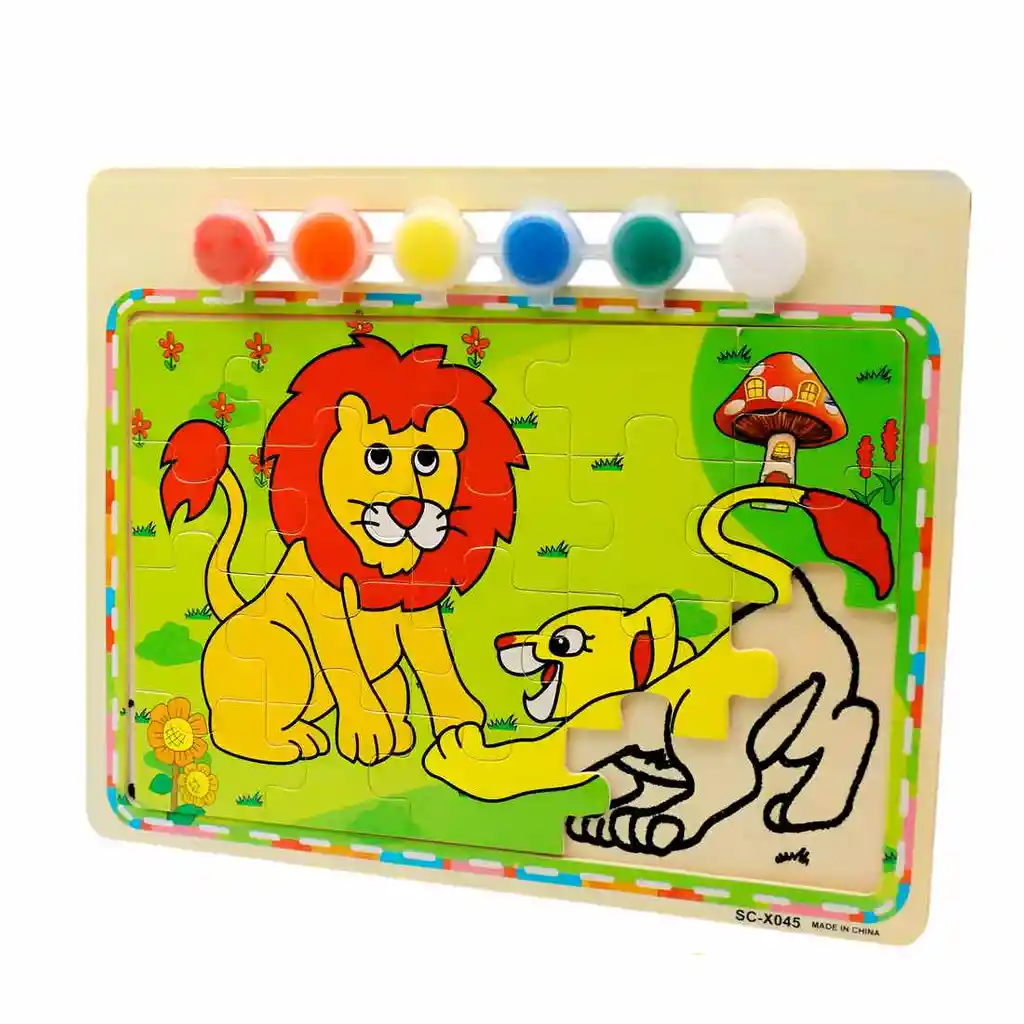 Dale vida a un adorable personaje y su pequeño amigo con este fantástico set creativo 2 en 1. La diversión comienza con el desafío de armar la figura principal, uniendo cada pieza para revelar una escena llena de alegría y amistad. Pero la experiencia no termina ahí, ya que este juguete incluye su propio set de pinturas para que los pequeños artistas puedan decorar y personalizar el marco, añadiendo su toque creativo. Es una actividad maravillosa y completa que estimula tanto la lógica y la resolución de problemas como la imaginación y el amor por el arte, todo en un solo regalo. Ficha Técnica: Dimensiones del tablero : 22 cm x 17.5 cm x 1 cm Material: Madera Edad Apta : + 3 Años Certificado de conformidad: SL-CS-210043 Referencia: DM1367 ** _Para defectos de fábrica o retractos: \_Por favor revise el producto apenas lo reciba y antes de usarlo. No aplican ley de retracto o defectos de fábrica luego de usar el producto. Se manejan máximo 5 días para reportar defectos de fábrica (por ejemplo, producto funciona mal, piezas faltantes, rotas, etc). Para hacer efectiva la devolución el producto debe devolverse con el empaque original, el cual debe estar en buen estado, incluir todos los documentos y las partes completas y sin daños.