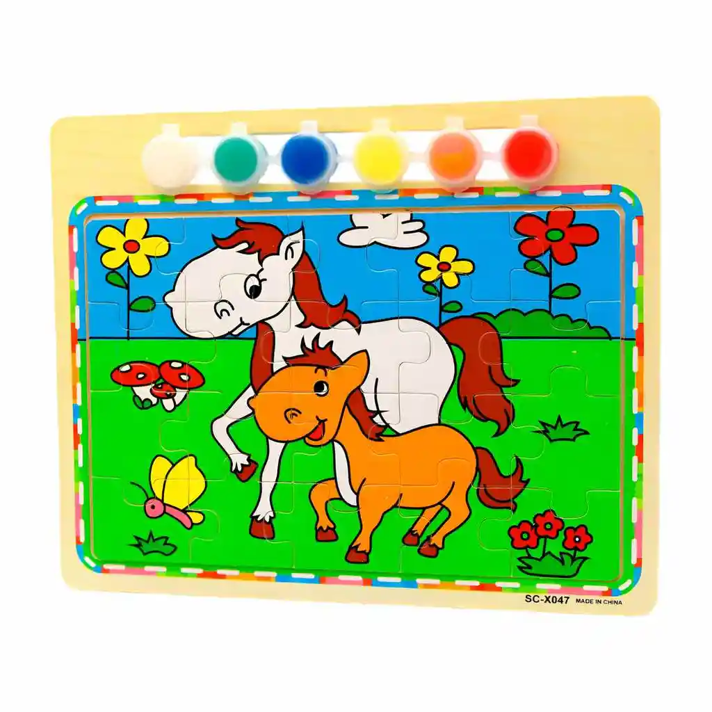 Dale vida a un adorable personaje y su pequeño amigo con este fantástico set creativo 2 en 1. La diversión comienza con el desafío de armar la figura principal, uniendo cada pieza para revelar una escena llena de alegría y amistad. Pero la experiencia no termina ahí, ya que este juguete incluye su propio set de pinturas para que los pequeños artistas puedan decorar y personalizar el marco, añadiendo su toque creativo. Es una actividad maravillosa y completa que estimula tanto la lógica y la resolución de problemas como la imaginación y el amor por el arte, todo en un solo regalo. Ficha Técnica: Dimensiones del tablero : 22 cm x 17.5 cm x 1 cm Material: Madera Edad Apta : + 3 Años Certificado de conformidad: SL-CS-210043 Referencia: DM1367 ** _Para defectos de fábrica o retractos: \_Por favor revise el producto apenas lo reciba y antes de usarlo. No aplican ley de retracto o defectos de fábrica luego de usar el producto. Se manejan máximo 5 días para reportar defectos de fábrica (por ejemplo, producto funciona mal, piezas faltantes, rotas, etc). Para hacer efectiva la devolución el producto debe devolverse con el empaque original, el cual debe estar en buen estado, incluir todos los documentos y las partes completas y sin daños.