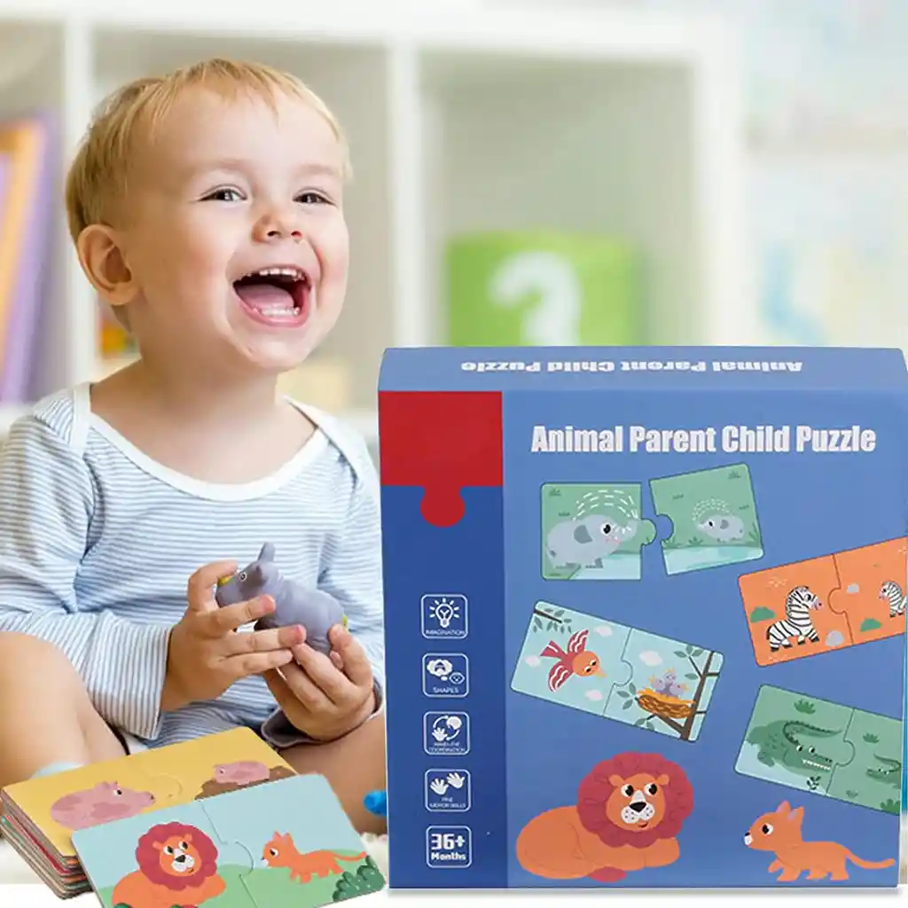 Desarrolla motricidad,imaginación,concentración y pensamiento lógico 20 fichas coloridas doble cara de animales para armar Piezas grandes para fácil agarre Material: Cartón prensado Medida empaque: 20 x 20 x 5cm