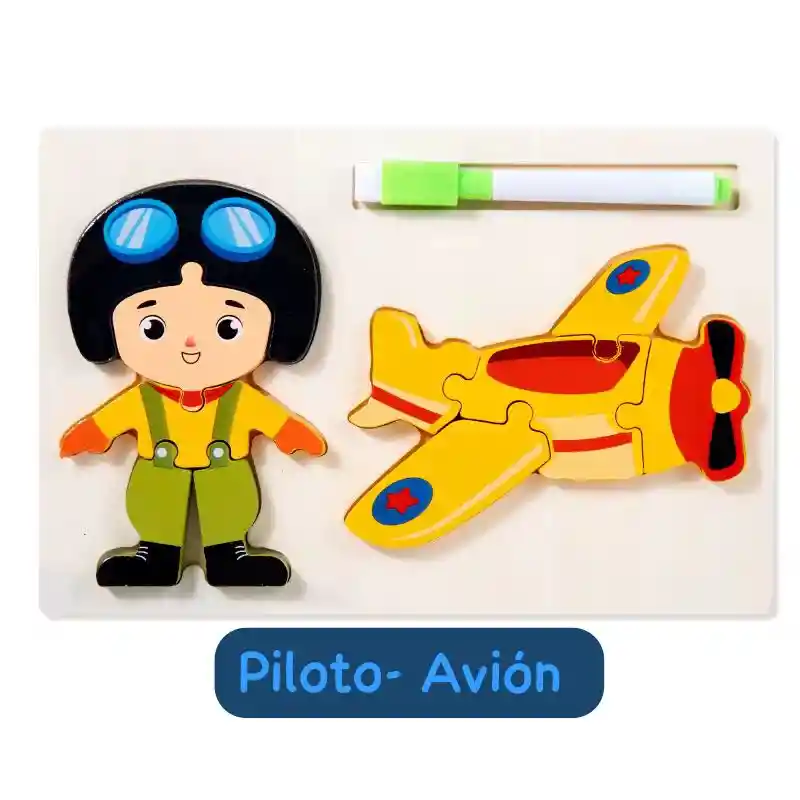 Rompecabezas temático en madera 2 en 1, diseñado para estimular el aprendizaje y la creatividad en los niños a través del juego didáctico. Integra una actividad de armado de piezas junto con un tablero que permite dibujar o escribir, ofreciendo una experiencia completa en un solo producto. El diseño favorece el reconocimiento de formas, la coordinación mano-ojo y la motricidad fina. El marcador incluido permite reutilizar el tablero, promoviendo la práctica constante y el desarrollo de habilidades cognitivas. Fabricado en madera con acabados suaves, es resistente y adecuado para el uso diario. Su estructura práctica facilita el almacenamiento y la organización de las piezas. Características principales: Función 2 en 1: rompecabezas y tablero de escritura Incluye marcador para uso continuo Material en madera resistente Piezas de fácil manipulación Favorece la coordinación, creatividad y aprendizaje Producto ideal para complementar actividades educativas y recreativas en casa o espacios de aprendizaje.