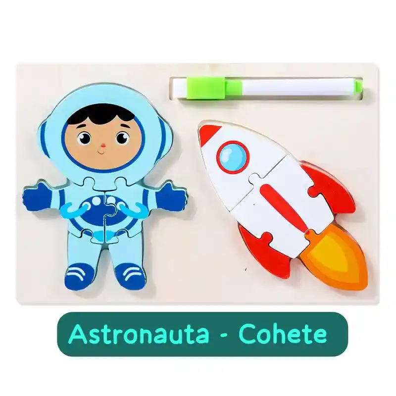 Rompecabezas temático en madera 2 en 1, diseñado para estimular el aprendizaje y la creatividad en los niños a través del juego didáctico. Integra una actividad de armado de piezas junto con un tablero que permite dibujar o escribir, ofreciendo una experiencia completa en un solo producto. El diseño favorece el reconocimiento de formas, la coordinación mano-ojo y la motricidad fina. El marcador incluido permite reutilizar el tablero, promoviendo la práctica constante y el desarrollo de habilidades cognitivas. Fabricado en madera con acabados suaves, es resistente y adecuado para el uso diario. Su estructura práctica facilita el almacenamiento y la organización de las piezas. Características principales: Función 2 en 1: rompecabezas y tablero de escritura Incluye marcador para uso continuo Material en madera resistente Piezas de fácil manipulación Favorece la coordinación, creatividad y aprendizaje Producto ideal para complementar actividades educativas y recreativas en casa o espacios de aprendizaje.