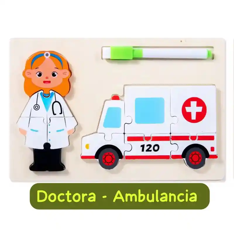 Rompecabezas temático en madera 2 en 1, diseñado para estimular el aprendizaje y la creatividad en los niños a través del juego didáctico. Integra una actividad de armado de piezas junto con un tablero que permite dibujar o escribir, ofreciendo una experiencia completa en un solo producto. El diseño favorece el reconocimiento de formas, la coordinación mano-ojo y la motricidad fina. El marcador incluido permite reutilizar el tablero, promoviendo la práctica constante y el desarrollo de habilidades cognitivas. Fabricado en madera con acabados suaves, es resistente y adecuado para el uso diario. Su estructura práctica facilita el almacenamiento y la organización de las piezas. Características principales: Función 2 en 1: rompecabezas y tablero de escritura Incluye marcador para uso continuo Material en madera resistente Piezas de fácil manipulación Favorece la coordinación, creatividad y aprendizaje Producto ideal para complementar actividades educativas y recreativas en casa o espacios de aprendizaje.