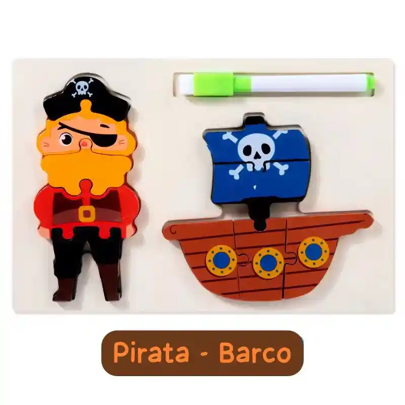 Rompecabezas temático en madera 2 en 1, diseñado para estimular el aprendizaje y la creatividad en los niños a través del juego didáctico. Integra una actividad de armado de piezas junto con un tablero que permite dibujar o escribir, ofreciendo una experiencia completa en un solo producto. El diseño favorece el reconocimiento de formas, la coordinación mano-ojo y la motricidad fina. El marcador incluido permite reutilizar el tablero, promoviendo la práctica constante y el desarrollo de habilidades cognitivas. Fabricado en madera con acabados suaves, es resistente y adecuado para el uso diario. Su estructura práctica facilita el almacenamiento y la organización de las piezas. Características principales: Función 2 en 1: rompecabezas y tablero de escritura Incluye marcador para uso continuo Material en madera resistente Piezas de fácil manipulación Favorece la coordinación, creatividad y aprendizaje Producto ideal para complementar actividades educativas y recreativas en casa o espacios de aprendizaje.