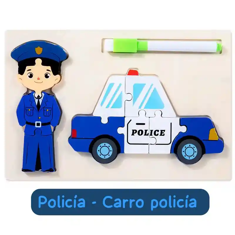 Rompecabezas temático en madera 2 en 1, diseñado para estimular el aprendizaje y la creatividad en los niños a través del juego didáctico. Integra una actividad de armado de piezas junto con un tablero que permite dibujar o escribir, ofreciendo una experiencia completa en un solo producto. El diseño favorece el reconocimiento de formas, la coordinación mano-ojo y la motricidad fina. El marcador incluido permite reutilizar el tablero, promoviendo la práctica constante y el desarrollo de habilidades cognitivas. Fabricado en madera con acabados suaves, es resistente y adecuado para el uso diario. Su estructura práctica facilita el almacenamiento y la organización de las piezas. Características principales: Función 2 en 1: rompecabezas y tablero de escritura Incluye marcador para uso continuo Material en madera resistente Piezas de fácil manipulación Favorece la coordinación, creatividad y aprendizaje Producto ideal para complementar actividades educativas y recreativas en casa o espacios de aprendizaje.