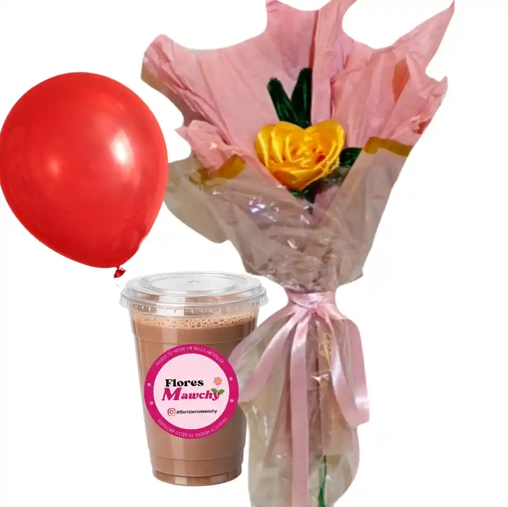 Hermosa rosa eterna de color amarillo , acompañada de una bebida de Milo en leche frio , 9oz, con tu mensaje personal y globo sencillo
