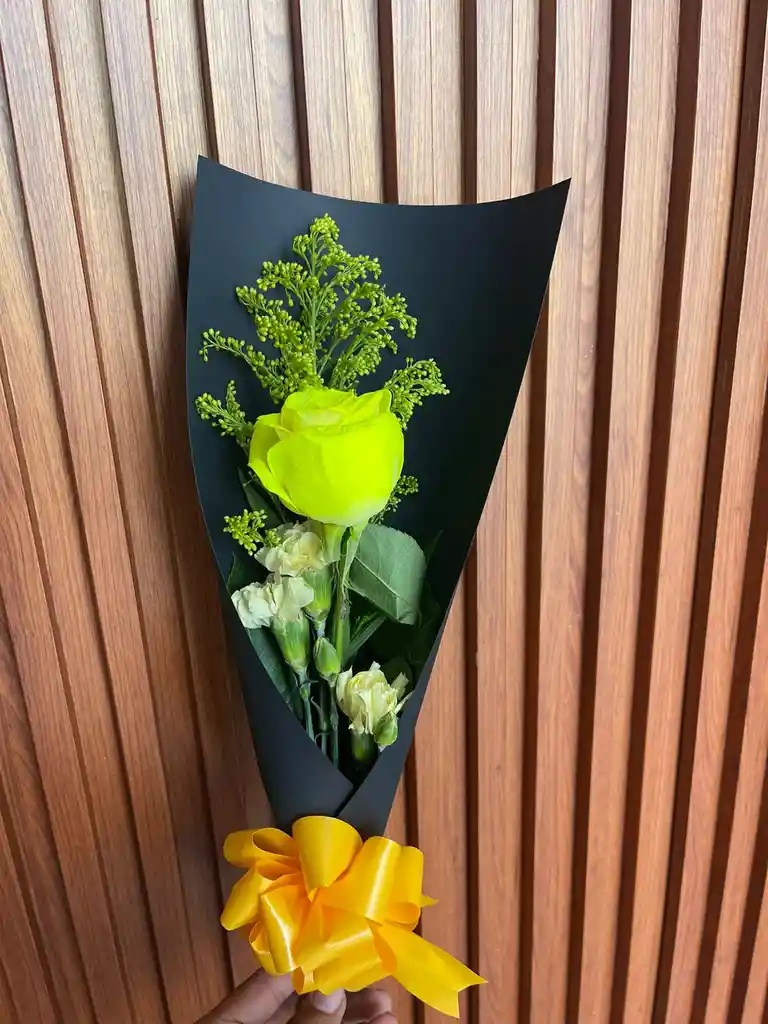 rosa amarilla decorada + tarjeta personalizada