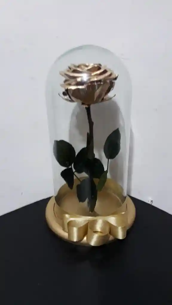 Rosa Dorada Inmortalizada Premium En Cupula Grande