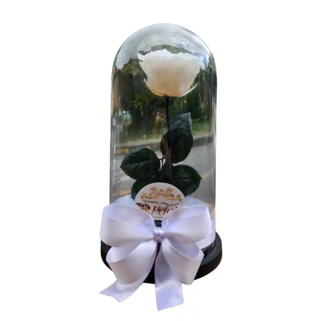 Rosa blanca preservada en urna de cristal. Presente ideal de condolencias.