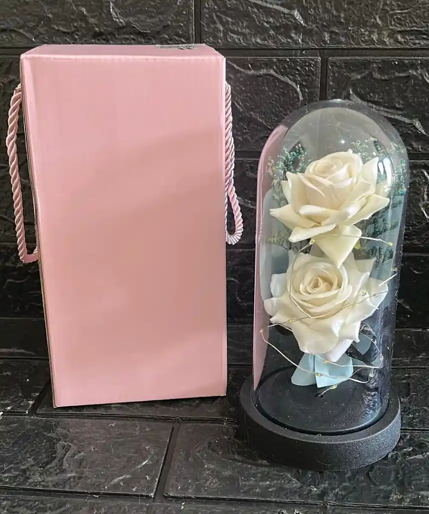 ROSA ETERNA BLANCA GRANDE ROSA PRESERVADA CON LUCES ROSA INMORTALIZADA EN CAPSULA (( FUNCIONA CON 3 PILAS AAA NO VIENEN INCLUIDAS )) COD.3964 REF-11