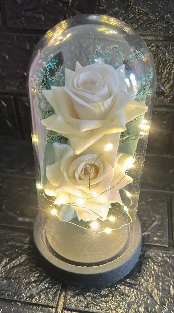 ROSA ETERNA BLANCA GRANDE ROSA PRESERVADA CON LUCES ROSA INMORTALIZADA EN CAPSULA (( FUNCIONA CON 3 PILAS AAA NO VIENEN INCLUIDAS )) COD.3964 REF-11