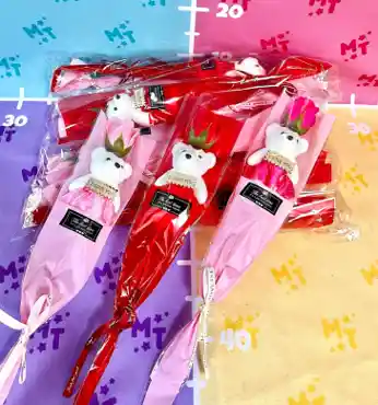 rosa eterna colo rosa con osito I love you largo 42 cm ancho 10 cm