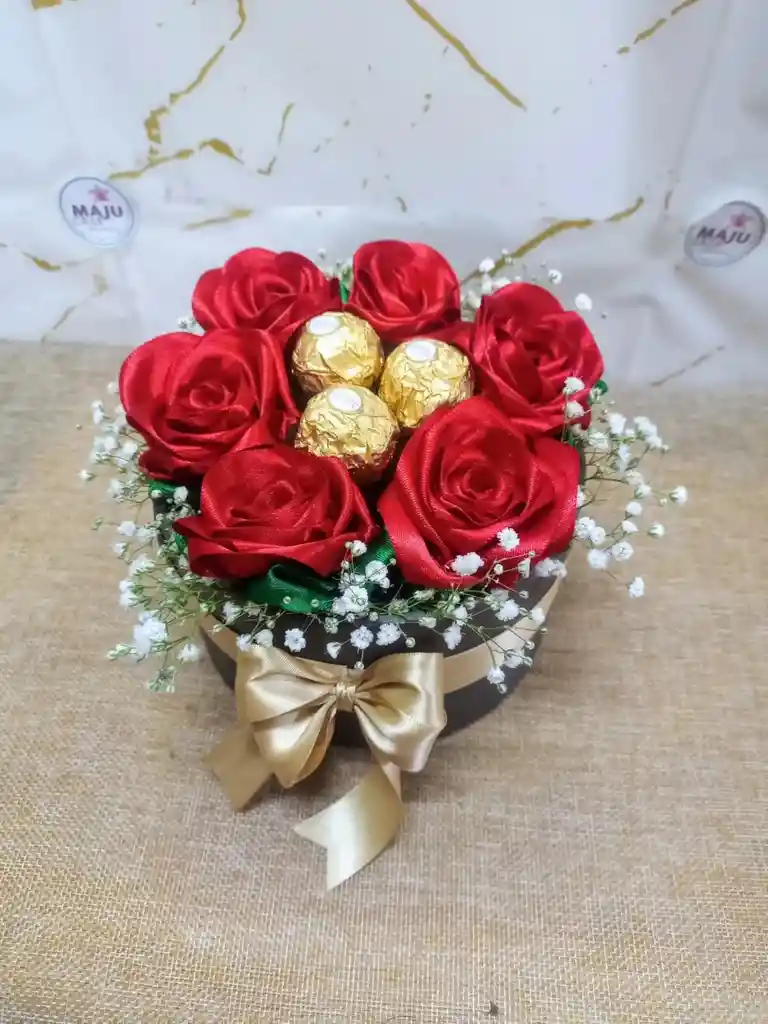 hermosa caja fina en cilindro con chocolates y rosa eterna
