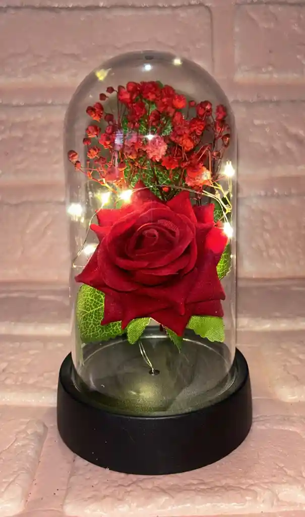 ROSA ETERNA ROJA PEQUEÑA CON LUCES EN CAPSULA / ROSA PRESERVADA / ROSA INMORTALIZADA (( FUNCIONA CON PILAS VIENEN INCLUIDAS )) COD.3639 REF-6