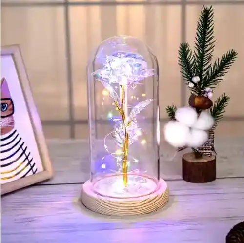 Rosa Eterna Preservada Con Luz Led Domo Petalos Rosa hecha a mano con pétalos y hojas hermosas y con acabado de lujo, adicional tiene petalos reales preservados sorprende por los detalles Y es realmente hermoso cuando enciendas las luces Alta calidad: el cristal está hecho de policarbonato de alta calidad que hace que la pantalla sea transparente y suave Perfecta decoración para el hogar: rosa, como símbolo de amor, ideal no solo para regalos a amantes, amigos o profesores, sino que se vería increíble como una decoración en tu salón o dormitorio Añade una atmósfera festiva a tu familia durante fiestas o festivales Práctica batería alimentada por 3 pilas AAA (no incluidas), solo tienes que poner las baterías y encender el interruptor y funcionará, es cómodo de usar Regalo increíble: este es un gran regalo ¡Y es una manera especial de decirle que te encantará más cuando el tiempo pase! Es un regalo encantador y romántico para Halloween, Navidad, boda, cumpleaños y aniversario